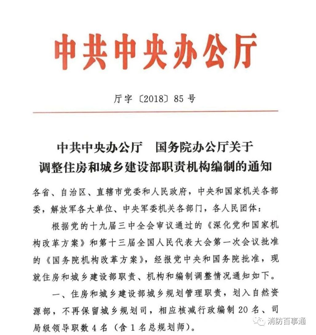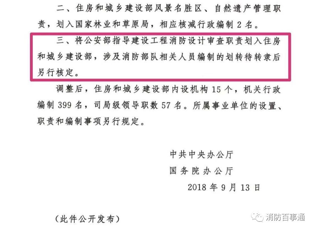 近日,中央辦公廳正式發文,將公安部指導建設工程消防設計審查職責劃入住房和城鄉建設部,涉及消防部隊相關人員編制的劃轉待轉隸后另行核定。
